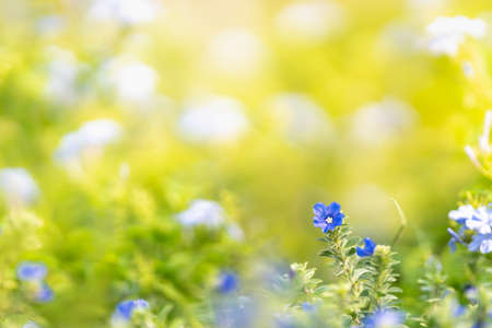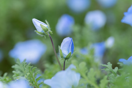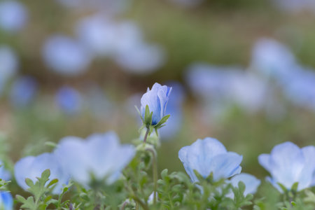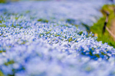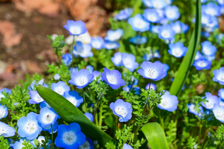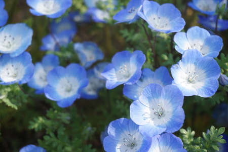 blue nemophila flowers land at seaside park on spring season.