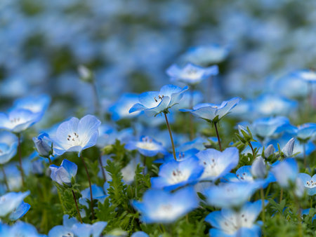 Nemophila (baby blue eyes flowers) flower field, blue flower carpet