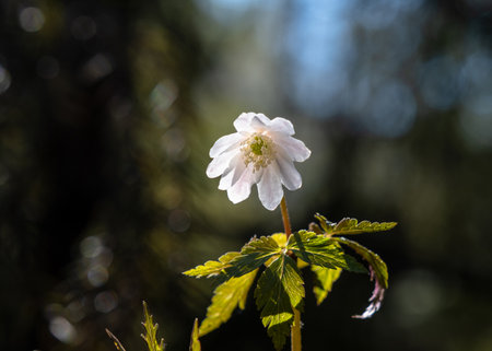 Windflower blooming in spring sun thimbleweed smell fox European wood anemone Anemone nemorosa