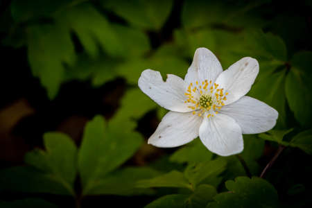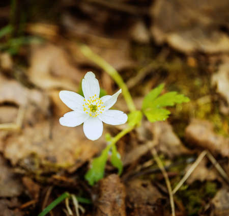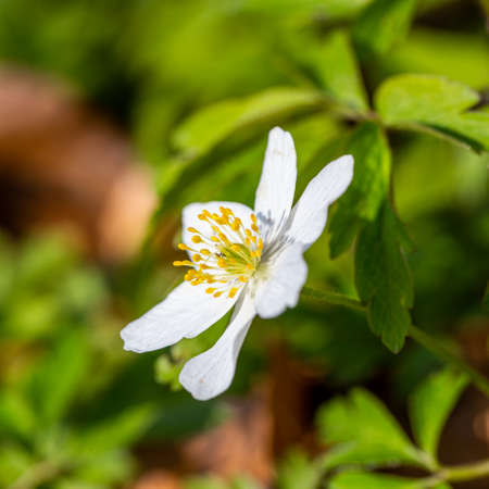 Wood Anemone white wildflower in nature, small flower in the woods.