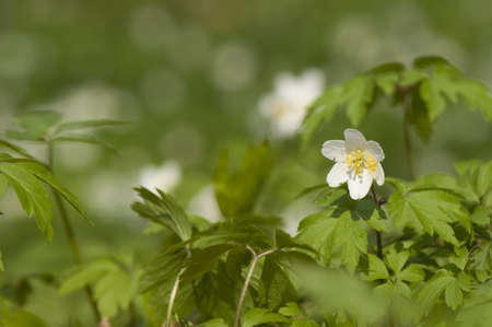 Spring wild flowers, close up photo of wood anemone, windflower, Anemone nemorosa