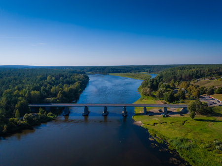 Merkine bridge on the bank of Nemunas river in Lithuania on the way from Druskininkai to Alytus.