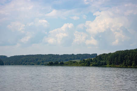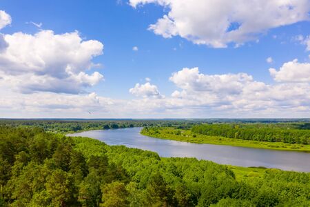 Summer river landscape, view of the river Tom from a height in Siberia, Russia