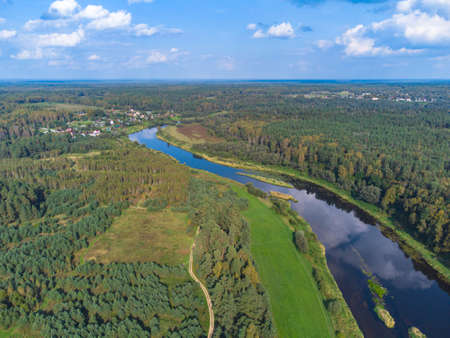 Aerial view of Birstonas city wich is located on the shore of Nemunas river in Lithuania. Its a small SPA resort with natural mineral waters.