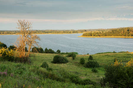 Serene landscape lake in the evening - the shores of Lake Otolovo in Belarus