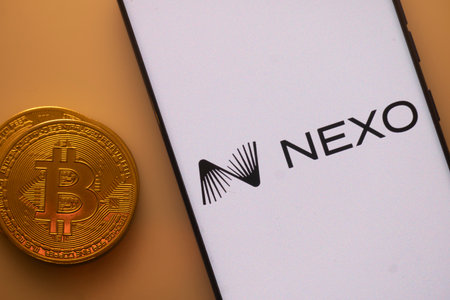 Dhaka, Bangladesh 22 September 2025:Nexo logo on smartphone screen beside Bitcoin, highlighting financial technology and cryptocurrency lending