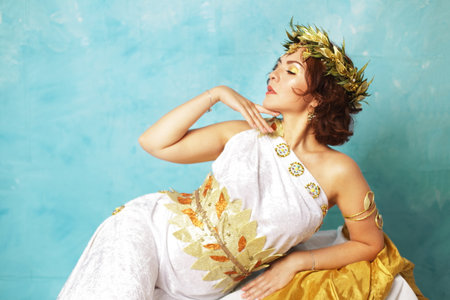 Beautiful woman wearing costume of greek goddess