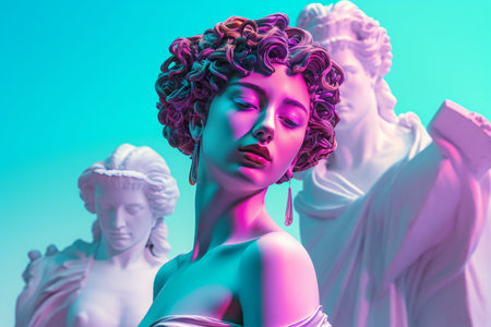 Vaporwave beautiful woman statue. Model trendy. Generate Ai