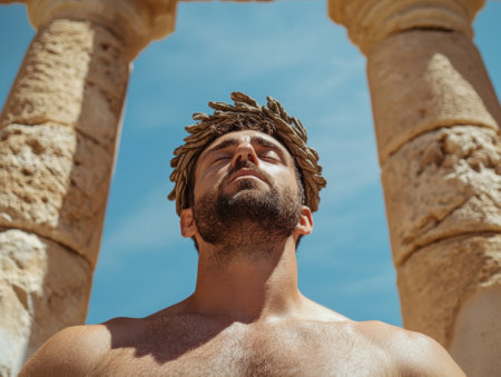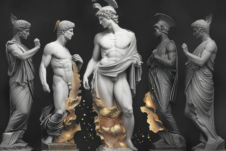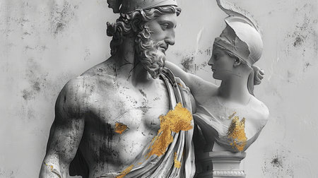 Creative representation of the greatest ancient Greek mythology greek god of olympus, titan, classics, wallpaper backdrop: divine and mythical figures in an artistic and classical .