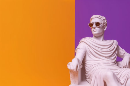 Gypsum statue in sunglasses on colored abstract background. Creative aesthetic contemporary art collage. Fashion wallpaper. Created with Generative AI
