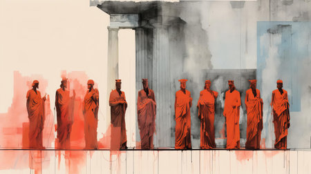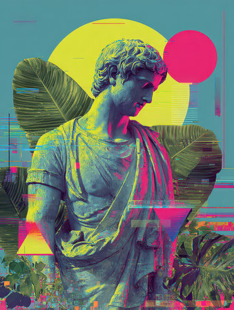 Timeless Fusion: A Contemporary Collage Showcasing Ancient Statues in Modern Conceptual Art