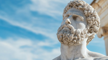 Marble statue of a bearded man against a blue sky