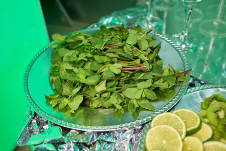 bright green mint leaves for fragrant tea