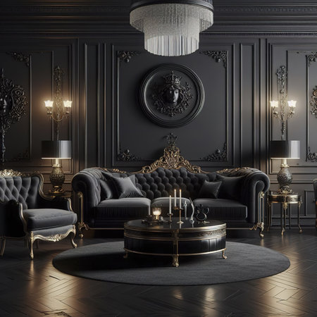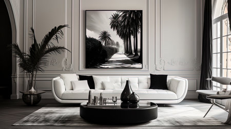 Elegance in a black and white living room: neo-barroarco style in every detail.