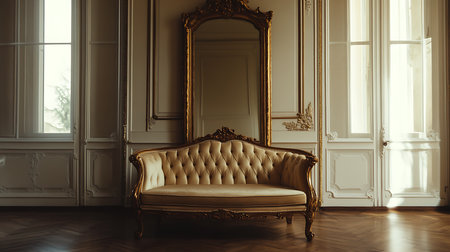 vintage sofa in empty Luxury room daylight generative ai illustration