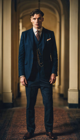 photo of 19th century europe man dressed in a suit and tie standing posing for a portrait, generative AI