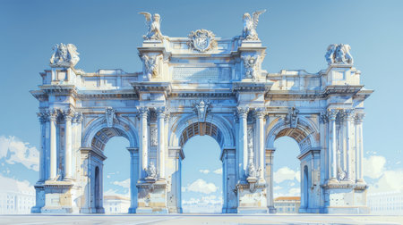 Roman triumphal arch with reliefs depicting victorious campaigns