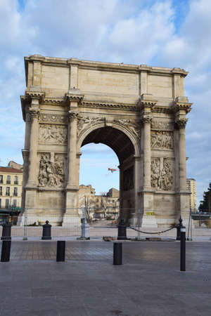 Porte Royale - triumphal arch in Marseille, France. Constructed in 1784 - 1839. Inscription on arch in French: To the Republic . Grateful Marseille.