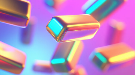 Stunning 3D visualization of colorful floating bars, each reflecting vibrant light against a gradient background, creating a dynamic and modern aesthetic.