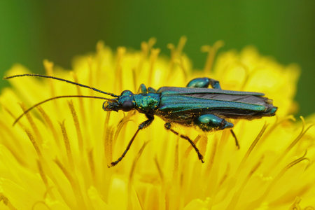 A closeup shot of thick-legged flower beetle, Oedemera Nobilis