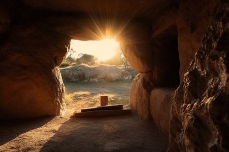 View from the stone inhabited cave on the natural landscape made with generative AI
