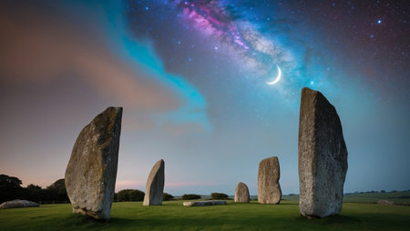 AI Generated. Mystical Night Sky Over Ancient Stone Circle
