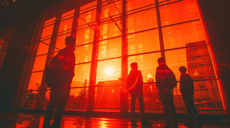 Silhouette of a woman standing in front of a modern building