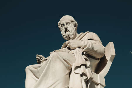 Statue of the ancient Greek philosopher Plato in Athens, Greece.