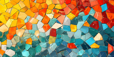 A vibrant and colorful mosaic pattern featuring various shapes and shades, perfect for artistic backgrounds, design projects, and creative inspiration.
