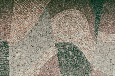 A top-down shot of a colorful mosaic floor with intricate patterns, offering a vibrant and artistic background