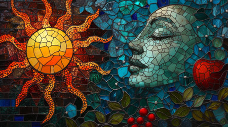 abstract mosaic and stained glass artwork, with bursts of colorful shapes and lines, created with generative ai