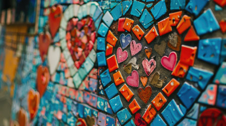 Colorful mosaic heart on the wall. Valentine's day concept.