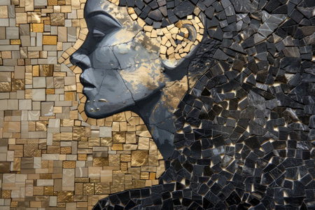 Portrait of a woman in black and gold mosaic. Design wall, poster, modern art.