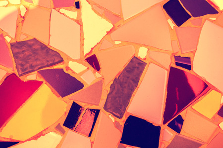 Mosaic on the big wall of different shapes and colors. Abstract colorful mosaic texture background.