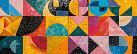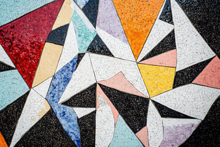 Colorful mosaic featuring geometric shapes and bright colors, forming a bold and modern pattern that stands out.