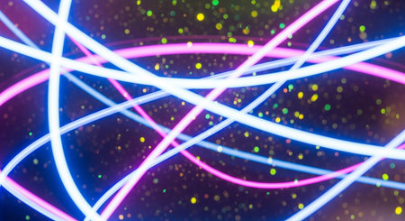 Abstract blurred neon lights with bokeh, creating a vibrant and mysterious atmosphere, ideal for backgrounds in tech, entertainment, or nightlife themes. Generative AI