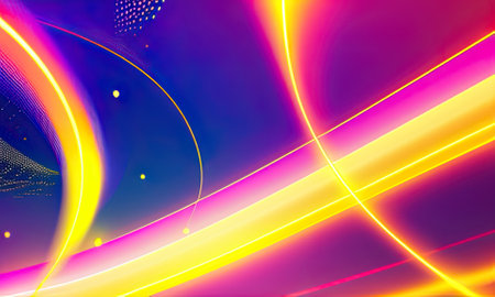 Colorful neon light waves create an energetic atmosphere in a modern digital art display