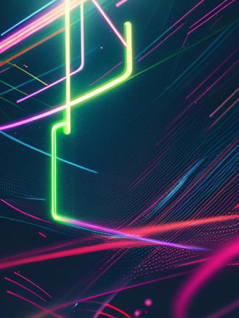 Colorful glowing neon lines extend across a dark background, creating an abstract landscape that evokes feelings of energy and movement.