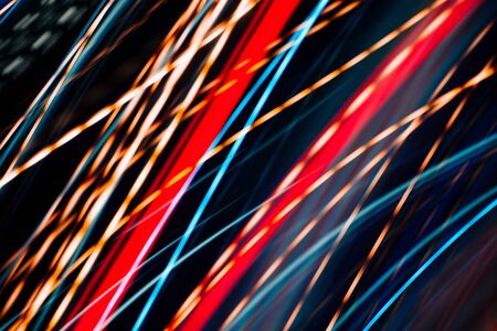 Colorful pattern of red, blue and orange dynamic lines of light. Modern blurred background. Art concept of lighting effects.