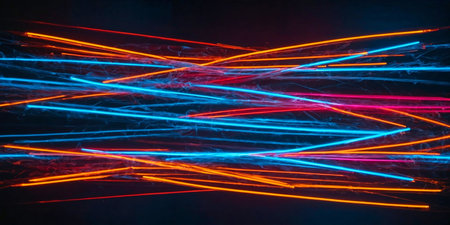 Vibrant neon fiber optic lines create an intriguing abstract texture. Ai Generated
