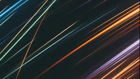 Vivid light streaks of various colors creating a sense of speed and motion in a dark background