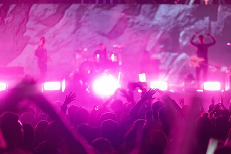 Music band on stage. Performance of the singer. Music Festival. Live performance. The blur effect.
