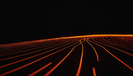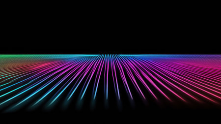 Colorful glowing neon lines extend across a dark background, creating an abstract landscape that evokes feelings of energy and movement.