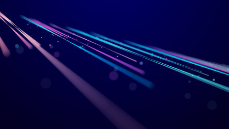 Futuristic data stream with glowing particles and neon lines