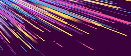3d Neon light effect glowing trails. Colorful Light motion speed background. Motion blur long time effect. Technology 5g design concept. Laser beam sparkling on dark scene. Fast moving to futuristic.