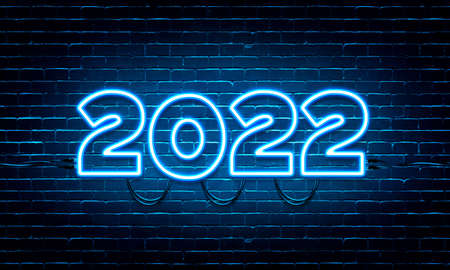 2022 year symbol neon symbol. Light color bulbs. Abstract concept 3d illustration.