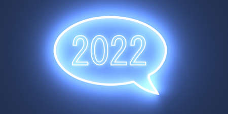 2022 new year, neon number in a dialogue balloon against blue color background, Illuminated sign, greeting card, holiday party concept. 3d illustration