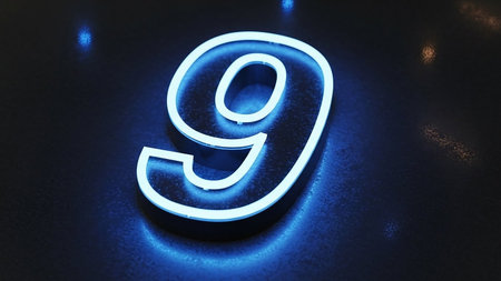 Number two sci-fi style Neon lights on dark blue background,3d rendering