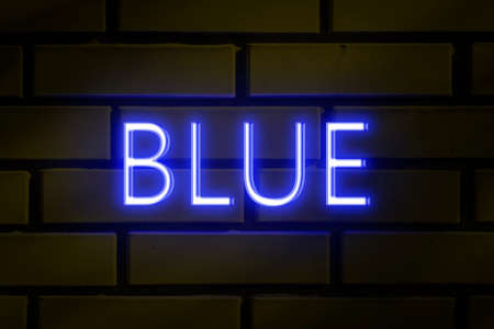 Neon realistic symbol text design template billboard. Neon 2020 Hello Happy new year holiday season sign. Light with-blue glowing Banner on Old vintage brick wall.Graphic frame logo Illustration.