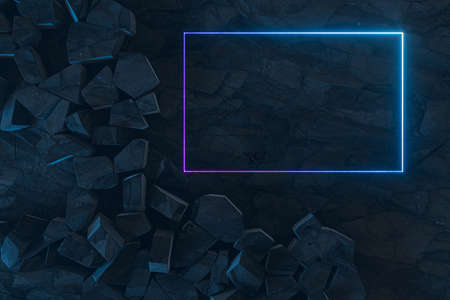 Minimalist geometric abstract background with neon light. 3D Rendering
